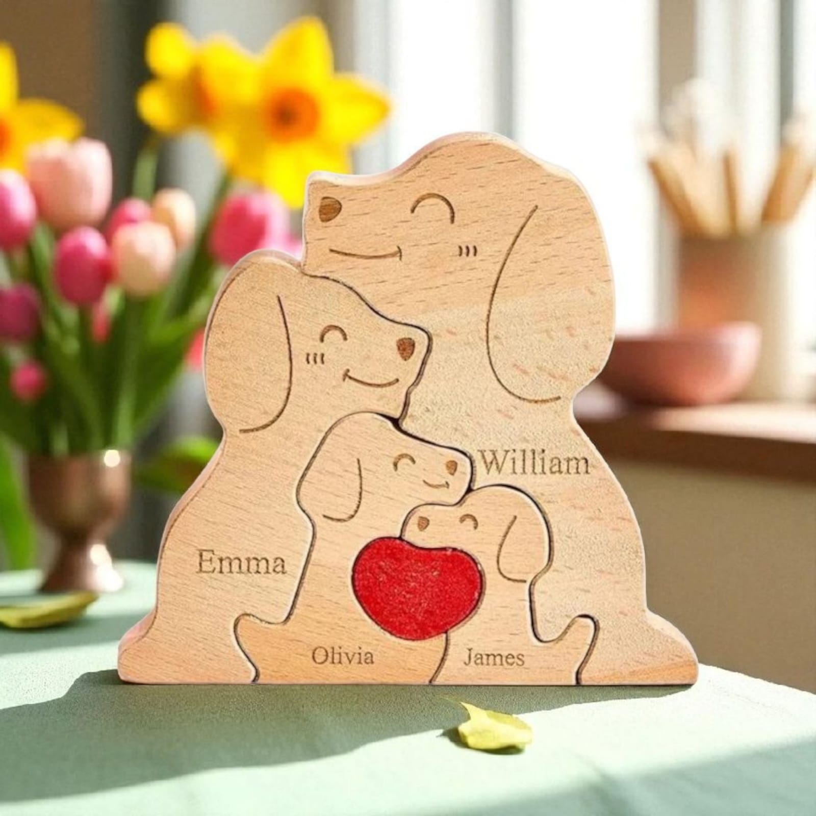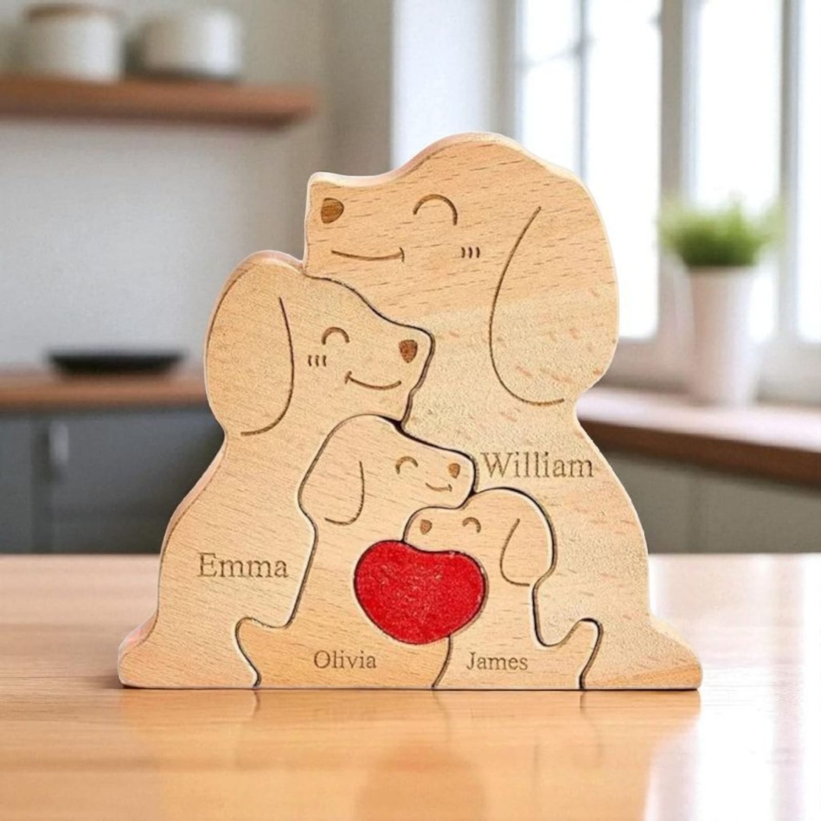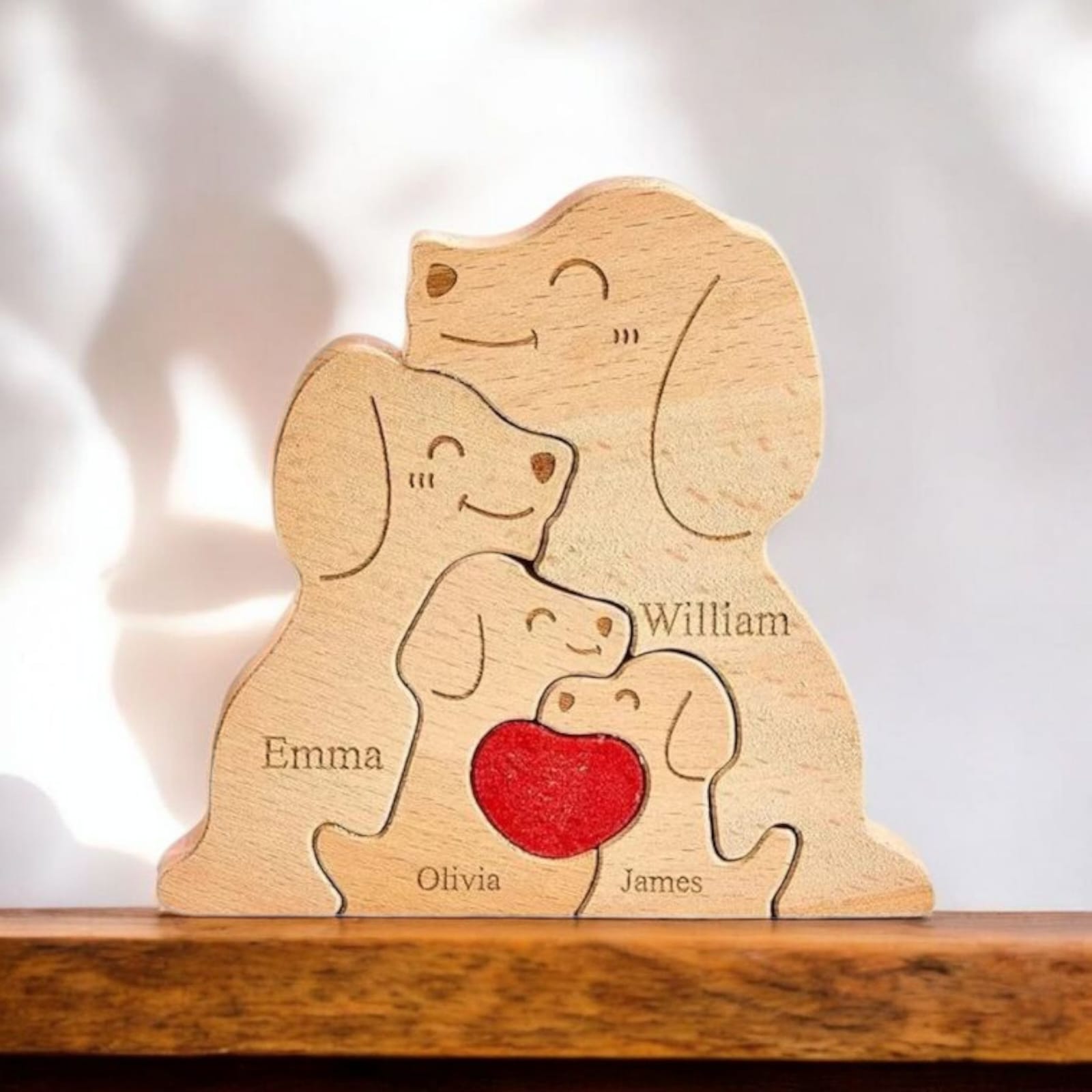 Give the gift of connection with this adorable dog family puzzle — a piece of heart in every piece of wood.